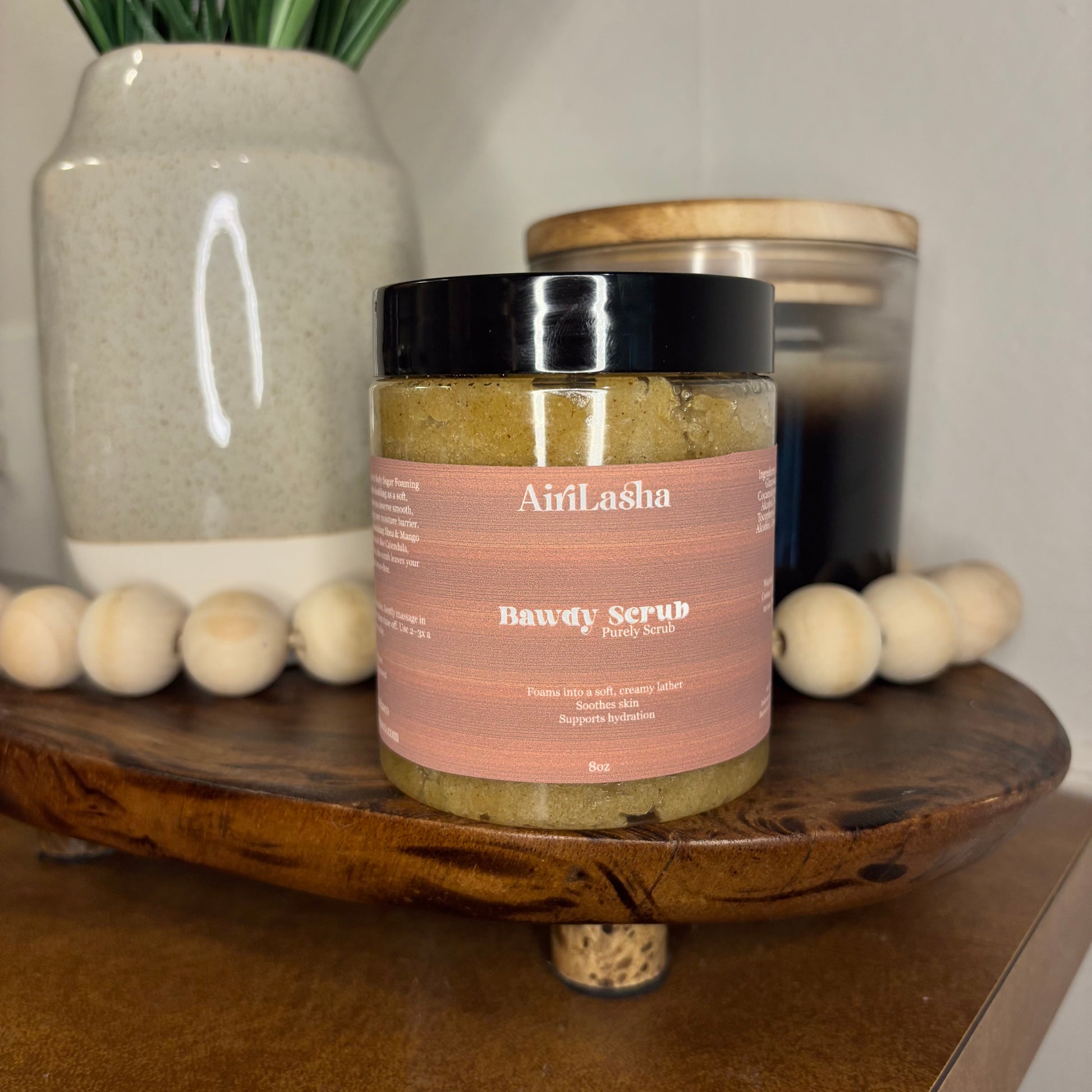 Polish, smooth, and revitalize your body with Purely Bawdy Scrub, a gentle exfoliant that balances hydration and detoxification. Infused with sugar, shea butter, colloidal oats, calendula, chamomile, grapefruit extract, and nourishing oils, this scrub smooths skin, reduces rough patches, and leaves your body soft, glowing, and fully awakened.