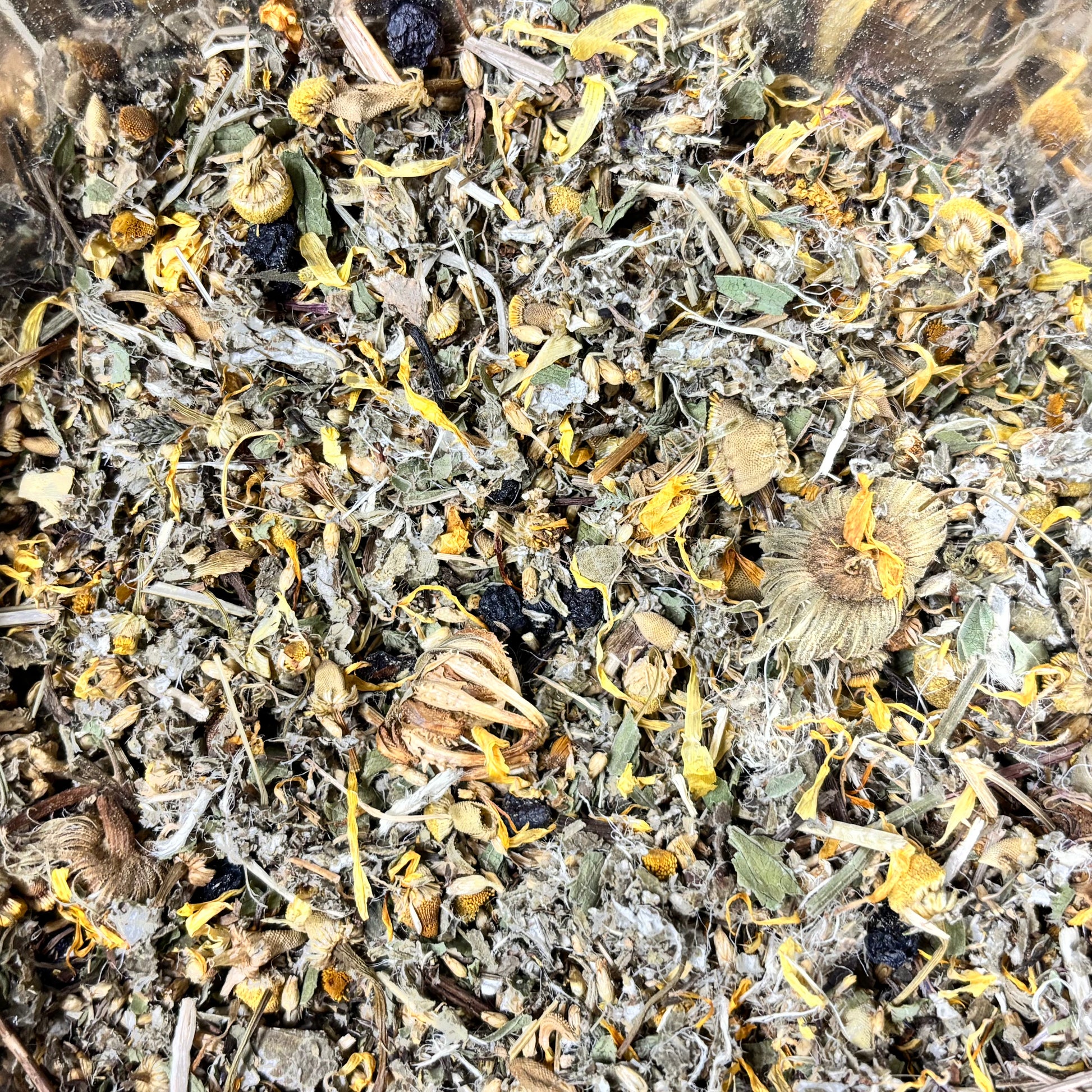 Ingredients : Bilberry, Bilberry Leaf, Blue Vervain, Calendula, Yarrow, Red Raspberry Leaf, Plantain Leaf, Chamomile, Marshmallow Root